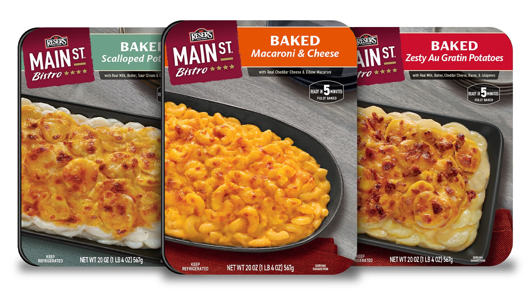 Our Main St Bistro line of restaurant quality baked side dishes, like Baked Macaroni & Cheese or Baked Scalloped Potatoes, taste like you’ve been cooking all day—but are microwave ready in minutes. Find them in your grocer’s meat department.